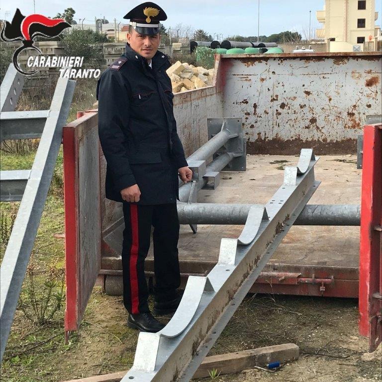 I militari, durante un servizio di pattuglia, finalizzato a prevenire e reprimere i reati in genere, li avrebbero sorpresi all’interno di un capannone industriale situato nella periferia di Pulsano, mentre caricavano sul cassone di un camion, travi di ferro zincato e altri componenti metallici.