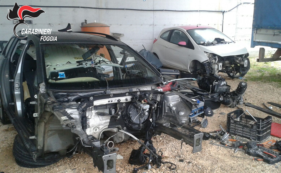 Sempre a Cerignola, in due distinte operazioni di servizio, gli uomini della locale Stazione Carabinieri, deferivano in stato di libertà G.P. cl. 78 e C.D. cl. 84, entrambi pregiudicati del posto, recuperando autoveicoli e parte degli stessi, tutti oggetto di furto, per un valoredi circa 100.000 euro. In particolare, presso l’autocarrozzeria del primo, i militari rinvenivano2 autocarri Iveco, 16 motori sempre marca Iveco, 2 cambi, e numerosi pezzi di autovettura, tutti oggetto di furto in varie zone d’Italia. L’uomo risponderà del reato di ricettazione e riciclaggio, mentre tutta l’area veniva posta sotto sequestro.