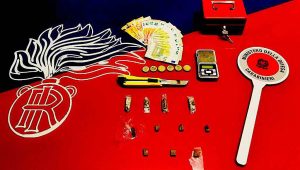 Sostanza stupefacente, bilancino, taglierino, materiale utile al confezionamento in dosi e denaro sono quindi stati posti sotto sequestro e, alla luce dei gravi indizi di colpevolezza per il reato di detenzione ai fini di spaccio di sostanza stupefacente, la donna è stata dichiarata in arresto dagli uomini dell’Arma e, al termine delle formalità di rito, sottoposta alla misura cautelare degli arresti domiciliari presso la propria abitazione, a disposizione dell’Autorità Giudiziaria.