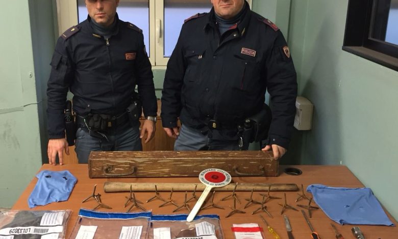 I poliziotti sono riusciti a bloccare immediatamente il 48enne ed il 29enne, nonostante i due abbiano opposto resistenza; in tale frangente, durante una breve colluttazione, il 48enne ha anche colpito uno degli agenti causandogli delle lesioni. Sottoposti a perquisizione, estesa alla vettura, sono stati trovati in possesso di utensili atti allo scasso: 3 cacciaviti, un coltello da cucina, un bastone di legno, tre chiodi a quattro punte ed un ariete di circa un metro, di fattura artigianale, celati nel bagagliaio. All’interno dell’abitacolo sono stati inoltre rinvenuti un passamontagna ed un paio di guanti.