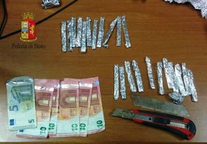 Nascosto negli indumenti personali, i “falchi” hanno recuperato un ulteriore involucro di alluminio con altre dieci stecche sempre della stessa sostanza confezionata allo stesso modo, e la somma di 55,00 euro suddivisa in banconote di piccolo taglio. La perquisizione è stata poi estesa all’abitazione del ragazzo.