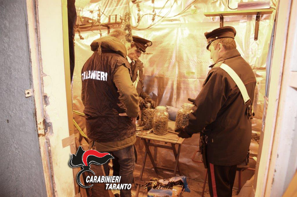 Il locale, infatti, era stato predisposto con cura per poter realizzare l’essiccazione e la lavorazione della marijuana mediante l’uso di lampade alogene, teli per coibentare il locale, nonché di un ventilatore per consentire un riciclo dell’aria. Nel corso delle operazioni, i militari rinvenivano e sequestravano circa 3,700 kg. di marijuana, custodita in diversi recipienti in vetro e 18 gr. di hashish, una bilancia di precisione e materiale per il confezionamento dello stupefacente, in parte già pronto per essere immesso sul mercato illecito dello spaccio di droga.
