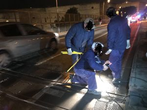 TARANTO – Intervento di emergenza sul Ponte Girevole, intorno alle ore 20:30 di ieri sera, 1 marzo. Polizia locale e Marina Militare avevano segnalato immediatamente la rottura di un giunto del marciapiede, posta al centro del Ponte (il punto di snodo per l’apertura e chiusura al passaggio delle navi).