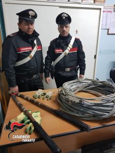 I militari li hanno sorpresi in contrada San Filippo, agro del comune di Laterza, mentre erano intenti a tranciare ed asportare cavi in rame da una cabina elettrica. I tre malfattori, alla vista dei militari, hanno tentato invano di darsi alla fuga a bordo di un furgone in loro uso, ma sono stati subito bloccati dai Carabinieri; nel corso della perquisizione personale e veicolare i militari rinvenivano circa kg.50 di cavi in rame, del valore complessivo di circa 1.500 euro, che venivano restituiti all’avente diritto.