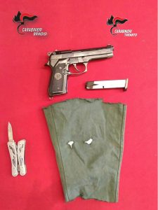 Il PAGANO, il giorno prima dell’arresto, il 9 aprile scorso, in Francavilla Fontana, era stato deferito in stato di libertà unitamente a un altro giovane oritano, per possesso ingiustificato di oggetti atti ad offendere. I due giovani sono stati fermati a bordo dell’autovettura condotta dal PAGANO Samuele che circolava contromano in una via del centro cittadino. I Carabinieri della Stazione di Francavilla Fontana, insospettiti dall’atteggiamento degli occupanti, apparsi alquanto “nervosi”, hanno approfondito gli accertamenti eseguendo una perquisizione sul veicolo. Nel vano porta oggetti dello sportello lato guida, i militari hanno rinvenuto una pinza multiuso con annessa lama appuntita lunga 5,5 cm; la perquisizione personale ha consentito di rinvenire sulla persona del trasportato T.V. classe 1998, precisamente nella cintola dei pantaloni, una pistola scacciacani calibro 8, senza matricola con canna priva di tappo rosso, e nella tasca del giubbotto un passamontagna ricavato da una manica di camicia in stoffa, sulla quale erano stati praticati due fori all’altezza degli occhi.
