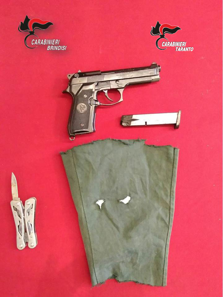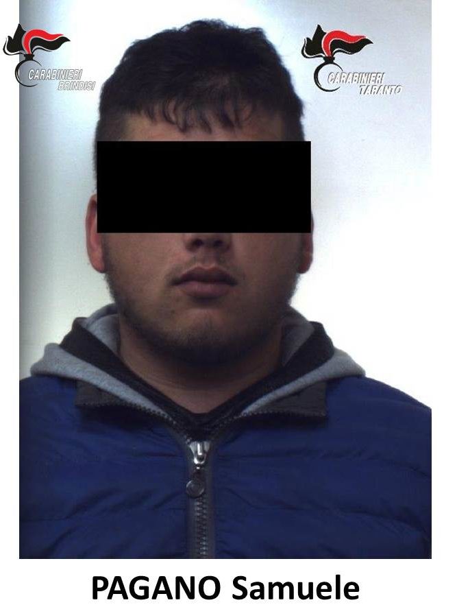 Il PAGANO, il giorno prima dell’arresto, il 9 aprile scorso, in Francavilla Fontana, era stato deferito in stato di libertà unitamente a un altro giovane oritano, per possesso ingiustificato di oggetti atti ad offendere. I due giovani sono stati fermati a bordo dell’autovettura condotta dal PAGANO Samuele che circolava contromano in una via del centro cittadino. I Carabinieri della Stazione di Francavilla Fontana, insospettiti dall’atteggiamento degli occupanti, apparsi alquanto “nervosi”, hanno approfondito gli accertamenti eseguendo una perquisizione sul veicolo. Nel vano porta oggetti dello sportello lato guida, i militari hanno rinvenuto una pinza multiuso con annessa lama appuntita lunga 5,5 cm; la perquisizione personale ha consentito di rinvenire sulla persona del trasportato T.V. classe 1998, precisamente nella cintola dei pantaloni, una pistola scacciacani calibro 8, senza matricola con canna priva di tappo rosso, e nella tasca del giubbotto un passamontagna ricavato da una manica di camicia in stoffa, sulla quale erano stati praticati due fori all’altezza degli occhi.