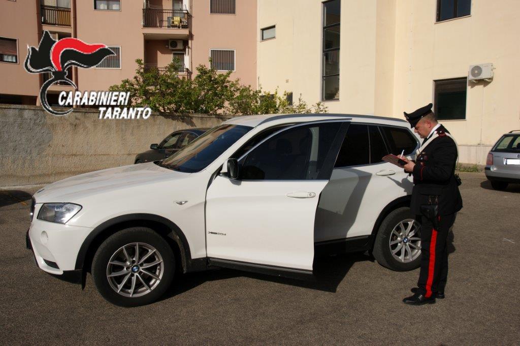 I militari, nel corso di un controllo di polizia, hanno proceduto, in Massafra, al controllo di una BMW serie X3, condotta dal 41enne; durante i preliminari accertamenti la documentazione dell’autovettura è apparsa in regola ed il veicolo è risultato essere intestato ad una persona residente in provincia di Bologna,particolare, quest’ultimo, che ha incuriosito ed indotto gli operanti ad approfondire il controllo.