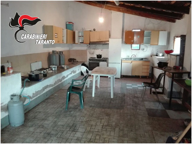 Nel corso delle operazioni veniva localizzato il sito in cui gli stessi vivevano, un caseggiato ubicato nel limitrofo territorio di Castellaneta, ove i Carabinieri accertavano che gli stessi vivevano in condizioni disumane.