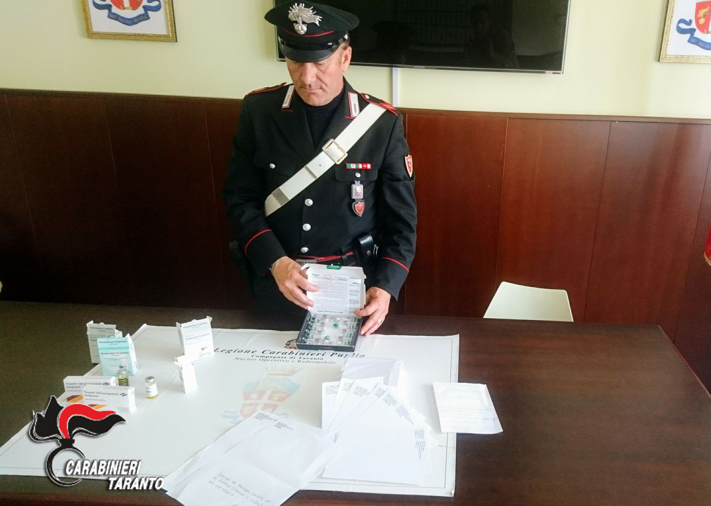 TARANTO – Alle prime ore del mattino di oggi, i Carabinieri dell’Aliquota Operativa del N.O.R.M. della Compagnia di Taranto, coadiuvati nella fase esecutiva da militari del N.A.S. di Taranto, hanno dato esecuzione, a Taranto e in provincia, alla notifica di informazioni di garanzia e contestuali decreti di perquisizione personale e locale, emessi dal Procuratore Aggiunto della Repubblica presso il Tribunale di Taranto dott. Maurizio Carbone, nei confronti di otto individui, tra i quali un medico di famiglia, ritenuti responsabili, a vario titolo, di: