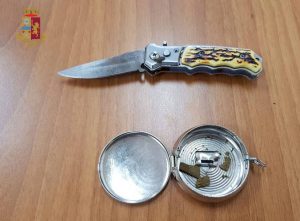 Uno di questi, un tarantino 64enne incensurato, è stato trovato in possesso di un coltello a scatto della lunghezza complessiva di 15 cm e di un contenitore con all’interno una piccola quantità di hashish.