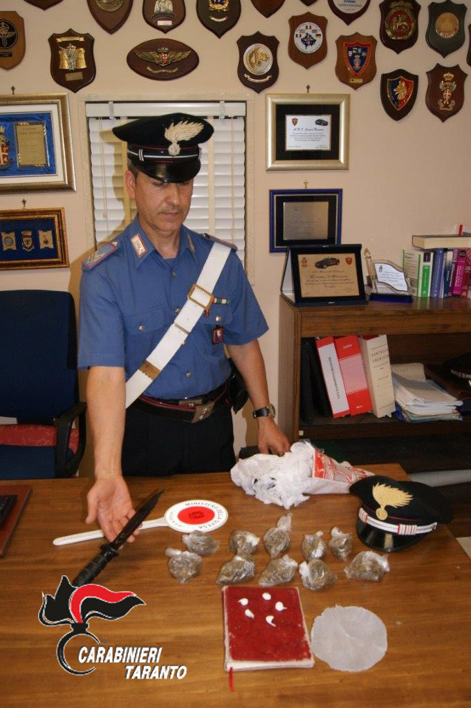 I Carabinieri della Stazione di Pulsano hanno arrestato, in flagranza di detenzione di stupefacenti ai fini di spaccio, ricettazione e porto abusivo di aggetti atti ad offendere, MARANGIOLO Benito, 26enne, pregiudicato del luogo.