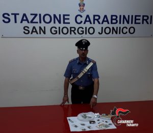 MONTEPARANO – I Carabinieri della Stazione di San Giorgio Jonico hanno tratto in arresto, in flagranza del reato di detenzione ai fini di spaccio di sostanze stupefacenti, un 19enne, di Monteparano, con precedenti di polizia. I militari nel corso di uno specifico servizio finalizzato al contrasto dello spaccio di sostanze stupefacenti nel comune di Monteparano, sorprendevano il 19enne, in atteggiamento sospetto, nei pressi di un istituto scolastico del posto.