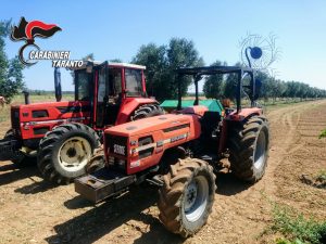 I Carabinieri della Stazione di Taranto Nord, a seguito della denuncia di furto presentata il 30 giugno scorso da un imprenditore agricolo tarantino, che riferiva di aver subito il furto dei suoi due trattori, custoditi in un parcheggio privato sito lungo la SP 102 che da Talsano conduce a Leporano, diramavano la nota di ricerca alla Centrale Operativa del Comando Provinciale jonico, al fine di attivare le immediate ricerche dei mezzi da parte di tutte le pattuglie presenti sul territorio.