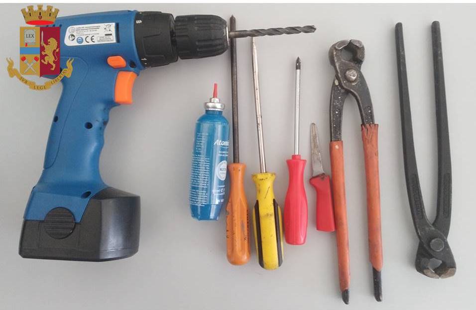 Ai poliziotti arrivati sul posto è apparsa immediatamente chiara la situazione, constatando anche la presenza dei fori sopraddetti. Ad avvalorare i loro sospetti, gli agenti hanno poi recuperato, all’interno della Toyota, il trapano con la punta ancora rovente, oltre a numerosi arnesi atti allo scasso. Pertanto alla luce di quanto ritrovato i due fermati, entrambi tarantini con numerosi precedenti per reati contro il patrimonio, rispettivamente di 33 e 45 anni, sono stati accompagnati negli Uffici della Questura e dopo le formalità di rito tratti in arresto per tentato furto aggravato.