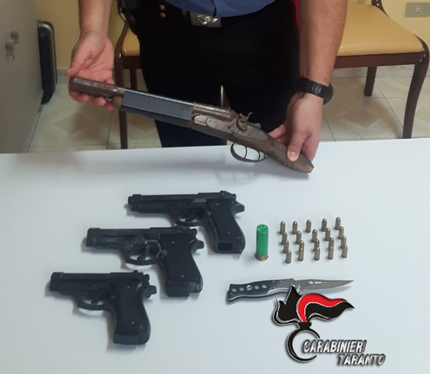 PULSANO – I Carabinieri della Stazione di Pulsano, durante un servizio di prevenzione e repressione dei reati in materia di armi, hanno arrestato, per detenzione illegale di armi, munizionamento e per alterazione di arma comune da sparo, un 45enne, operaio, incensurato, del posto.
