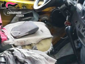 Nella prima mattinata di oggi, nei pressi di Borgo Mezzanone, un altro mezzo, ancora una volta con targa di bulgara, è stato sequestrato, poiché privo di qualsiasi documento, come la maggior parte di quelli già fermati. Anche in questo caso nel furgone, le cui condizioni di sicurezza sono risultate assolutamente inesistenti, i sedili erano stati sostituiti con alcune panche di legno di fortuna, utilizzate per il trasporto di extracomunitari impiegati come braccianti nei campi.
