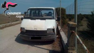 A San Marco in Lamis, in località Petrullo, i Carabinieri della Compagnia di San Giovanni Rotondo nei giorni scorsi hanno così sequestrato un FIAT Ducato, con targa bulgara ma risultato intestato ad un cittadino italiano, della provincia di Napoli, senza assicurazione e dotato delle solite panche di legno, e una OPEL Astra SW, risultata di proprietà di un pregiudicato foggiano, anche questa priva di copertura assicurativa. Essendo entrambi i mezzi stati frettolosamente abbandonati, sono ora in corso gli accertamenti per stabilirne la reale disponibilità ed eventuali responsabilità dei proprietari.
