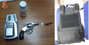 Tale perquisizione, avvenuta la sera del 5 settembre scorso, aveva permesso il rinvenimento di quanto segue: una pistola a tamburo con matricola abrasa, 5 proiettili di calibro 7.65 mm, una dose di 0,6 grammi di cocaina, tre bilancini di precisione, un flacone di metadone, un giubbotto antiproiettile e due buste contenenti delle monete per una somma complessiva di 580 euro.