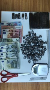 Nell’immediata perquisizione personale i “Falchi” hanno recuperato 17 piccole stecche di hashish preconfezionate ed una banconota da 10 euro. Poco distante dal luogo del fermo i poliziotti hanno poi rinvenuto un bilancino elettronico ancora sporco di hashish. Al termine dell’operazione il giovane è stato condotto negli uffici della Questura e tratto in arresto. L’acquirente trovato anch’egli in possesso di una dose di hashish è stato segnalato alle Autorità competenti.