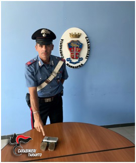 Lo stupefacente sequestrato sarà analizzato dai Carabinieri del Laboratorio Analisi Sostanze Stupefacenti del Reparto Operativo del Comando Provinciale di Taranto per accertarne il principio attivo.
