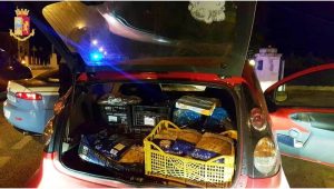 Avendo la certezza che il sospettato avesse compiuto un furto, il poliziotto, a bordo della sua auto, si è messo al suo inseguimento, allertando immediatamente i colleghi del Commissariato, che nel giro di pochi minuti sono riusciti a bloccare la Citroen con i due uomini a bordo sulla SS 172 in direzione di Taranto. All’interno dell’auto fermata i poliziotti hanno recuperato, come detto, una notevole quantità di alimenti custoditi in cassette di plastica, che come poi accertato erano appena stati rubati da un box di proprietà di un associazione di Promozione Sociale. Dopo quanto accertato i due ladri sopresi sul fatto sono stati accompagnati negli Uffici del Commissariato e dopo le formalità di rito tratti in arresto. Tutta la merce rubata è stata restituita ai legittimi proprietari nel frattempo giunti sul posto.