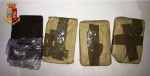 Insospettiti, gli agenti hanno così deciso di procedere ad una perquisizione domiciliare che ha avuto esito positivo. Nascosti, infatti, in un mobile della sala da pranzo, sono stati rinvenuti quattro panetti di sostanza di hashish, dal peso complessivo di 400 grammi confezionati con della carta da pacchi. In considerazione delle precarie condizioni di salute, il Giannotta, su disposizione dell’A.G. competente, è stato posto sottoposto agli arresti domiciliari.