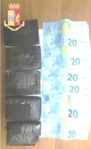 TARANTO – Nel pomeriggio di ieri gli agenti della Sezione Falchi della Squadra Mobile durante un mirato servizio antidroga nel quartiere Paolo Sesto, hanno perquisito un appartamento in Via XX Aprile, dal quale nei giorni scorsi avevano notato un 34enne tarantino, giungere con la sua auto e dopo brevi soste ripartire frettolosamente per raggiungere un circolo privato situato poco distante. L’uomo CATAPANO Pietro, messo sotto osservazione da qualche tempo era sospettato di aver messo in piedi una fiorente attività di spaccio. Nel corso del controllo alla presenza del sospettato, i Falchi hanno recuperato in un ripostiglio, all’interno di una scatola di cartone, 4 panetti di hashish per un peso complessivo di circa 500 grammi. Nel portafoglio del Catapano sono stati anche poi trovati 120 euro in banconote da 20 , che sono stati posti sotto sequestro perché considerati l’illecito provento dell’attività di spaccio.