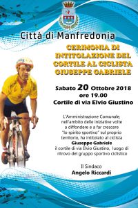MANFREDONIA – Un cortile di Manfredonia sarà intitolato a Giuseppe Gabriele, ciclista e appassionato della bicicletta. Lo ha