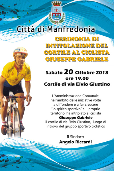 MANFREDONIA – Un cortile di Manfredonia sarà intitolato a Giuseppe Gabriele, ciclista e appassionato della bicicletta. Lo ha