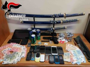 Nell’abitazione del P. sono state, inoltre, trovate diverse armi bianche, mai denunciate all’Autorità di pubblica sicurezza, ed in particolare più sciabole giapponesi ed alcuni grossi pugnali, oltre che una pistola ad aria compressa, dalla quale era stata rimossa la verniciatura rossa all’estremità della canna, in modo da sembrare identica ad un’arma vera, e per tale motivo l’uomo è stato deferito all’Autorità Giudiziaria anche per il reato di detenzione abusiva di armi.