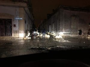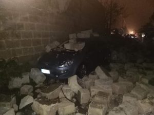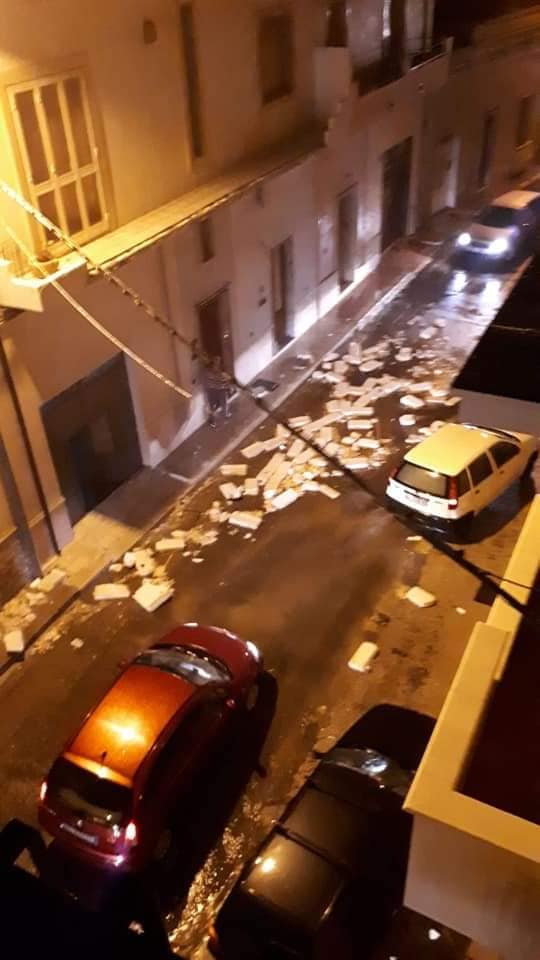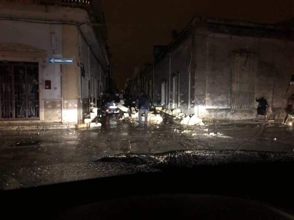MANDURIA – Una tromba d’aria si è abbattuta sulla città messapica nella giornata di ieri. Divelte saracinesche, crollata una parte del timpano della chiesa di San Michele Arcangelo, i cui detriti son finiti sulle auto in sosta. Tanti gli alberi caduti in piazza Giovanni XXIII e sulla strada che conduce ad Oria. Allagamenti ovunque e conseguente blackout elettrico. Un inferno quello che si è scatenato ieri sera su Manduria, come si vede anche dalle immagini.