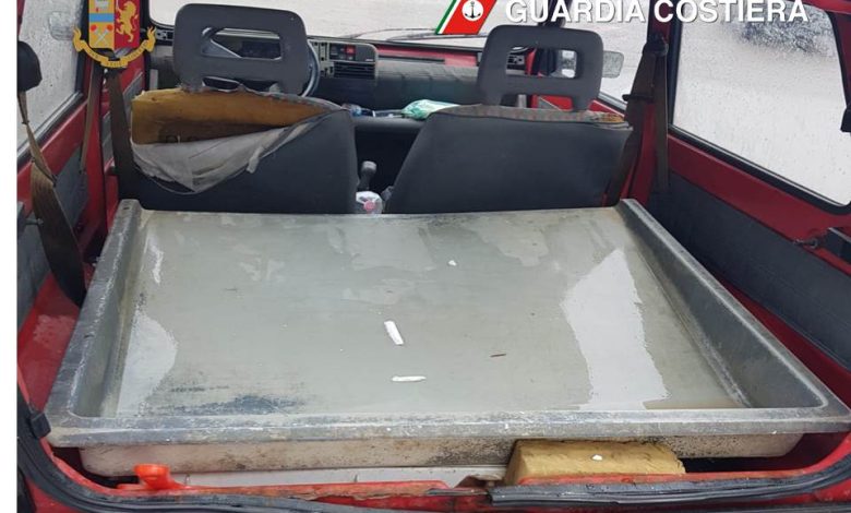All’interno del portabagagli, privo di cella frigorifera e di qualsivoglia requisito sanitario e con evidenti segni di ruggine sulla carrozzeria, sono stati rinvenuti 13 chilogrammi di prodotti ittici in cattivo stato di conservazione.