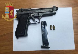 Subito dopo i poliziotti hanno poi rinvenuto sul sedile posteriore dell’auto una pistola modificata e resa perfettamente funzionante, compatibile con il caricatore in precedenza recuperato. Nel portabagagli inoltre è stato anche trovata una mazza da baseball in alluminio. Dopo il ritrovamento dell’arma, del caricatore e del bastone, il conducente ed i due passeggeri dell’auto sono stati accompagnati negli Uffici della Questura.