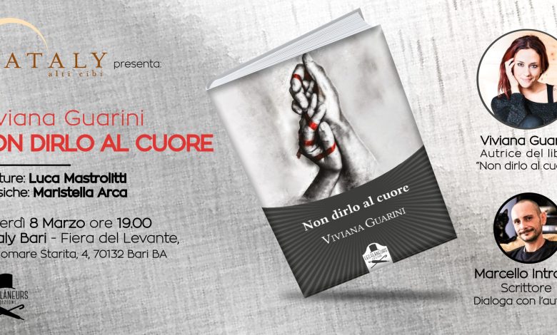 BARI – In occasione della festa della donna, sarà presentato venerdì 8 Marzo presso Eataly il romanzo di Viviana Guarini “Non dirlo al cuore” (Les Flâneurs Edizioni), vincitore della 3a edizione del Premio “Ludovica Castelli”. Appuntamento alle ore 19.00. Ingresso libero.