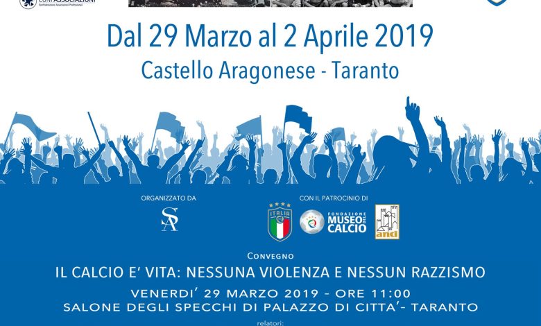 La conferenza stampa di presentazione dell’evento si svolgerà lunedì 25 marzo alle ore 11, presso il Salone degli Specchi di Palazzo di Città. All’appuntamento parteciperanno Vittorio Galigani, Mauro Grimaldi (curatore della mostra e consigliere delegato Federcalcio Servizi) e Carmen Casula (delegato allo Sport del Comune di Taranto.