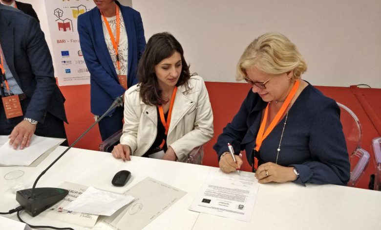 La firma è avvenuta in occasione del Forum internazionale “LEGGERE È COMUNITÀ –Local Cultural Policies for Sustainable Social Development”, svoltosi presso il nuovo centro congressi della Fiera del Levante a Bari. Presenti l’Assessore al Centro Storico e alla Rigenerazione Urbana Emiliana Bitetti, il Consigliere con delega al Museo Civico e Beni Culturali Angelo Moro e la funzionaria responsabile del servizio della Biblioteca Civica del Comune di Ginosa Rosa Melluso.