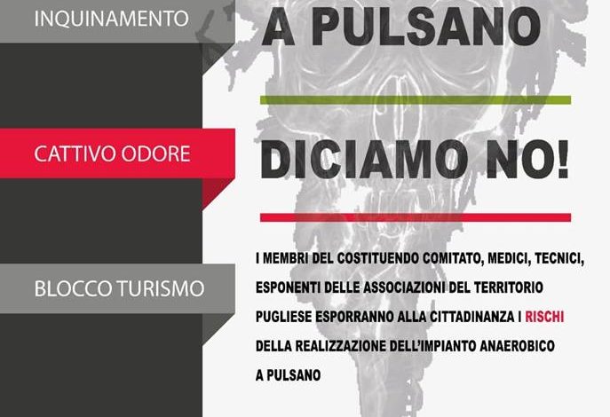 Il Comitato Pulsano Terra Nostra quanto prima formalizzerà la propria esistenza al fine di manifestare il proprio dissenso in tutte le sedi opportune, con onesta intellettuale e mente aperta, attivando un pubblico dibattito su un argomento strategico per il territorio e potenzialmente rischioso per la salute dei cittadini di Pulsano ma anche dei comuni limitrofi. A tal fine, GIOVEDI 11 APRILE 2019, alle ORE 18,15 in PIAZZA CASTELLO – PULSANO, si terrà un incontro pubblico con la cittadinanza, con la presenza di medici, associazioni e tecnici, per affrontare le problematiche connesse alla prevista realizzazione di un impianto di compostaggio nel nostro territorio. “