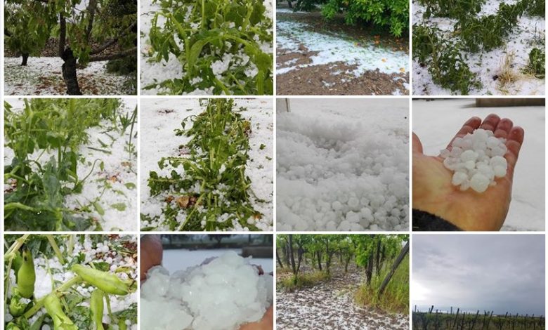 Particolare impressione destano le immagini dei vigneti del Tarantino, che appaiono come “mitragliati” da raffiche di grandine così violente da distruggere tutto. Danni anche a Palagianello, a Palagiano per una fascia di oltre 10 chilometri lungo l’arco jonico e fino alla Basilicata. Tutte le colture sono state colpite: agrumi, ulivo, ortaggi a pieno campo e fruttiferi. Sono state danneggiate anche le colture protette con reti, teli e tunnel.