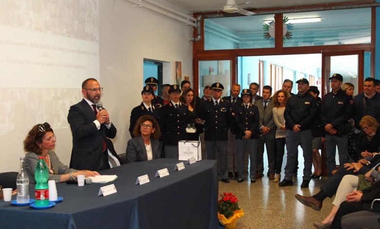 “Momenti come questo – dice il Questore – rappresentano la dimostrazione concreta e tangibile che la scuola ha una attenzione particolare nell’infondere nei giovani il senso di giustizia e di libertà. Sono profondamente onorato di rappresentare la Polizia di Stato in questa cerimonia di intitolazione della palestra scolastica ad un nostro caduto. Così, un luogo come la palestra, tradizionalmente dedicato ad un momento di condivisione e socialità nel quale si apprende l’importanza del rispetto delle regole, diventa occasione di riflessione sul sacrificio prestato per perseguire gli ideali di libertà e di democrazia.