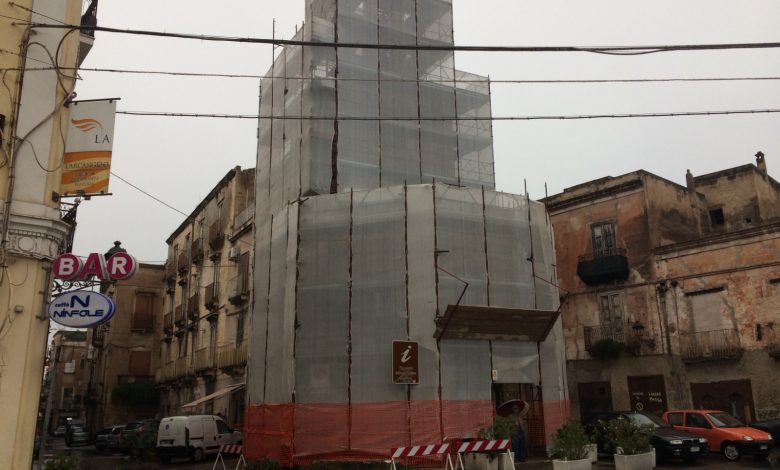 “In questi giorni – interviene l’assessore ai lavori pubblici Occhinegro – si stanno ultimando le operazioni di pulizia e restauro delle facciate, per circa 400 mq di superficie, con puntuali operazioni di cuci-scuci dei conci in carparo ammalorati. Si sta procedendo alla messa in sicurezza e ripristino del parapetto del balcone e della campana. Contiamo di restituire alla piazza il suo simbolo restaurato e finalmente ripulito da anni di smog ed abbandono in meno di 15 giorni.”