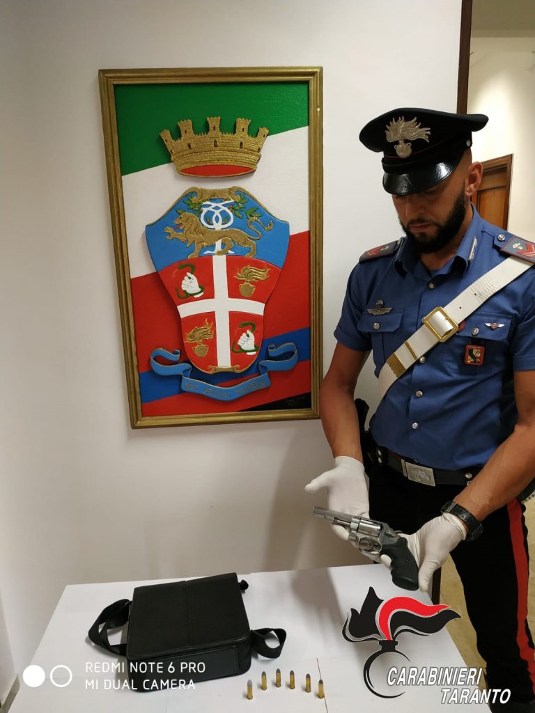 Il soggetto, ben noto alle forze dell’ordine per il suo profilo criminale, alla vista dei militari nei pressi di un bar di Manduria, si sarebbe dato alla fuga a piedi abbandonando uno scooter a bordo del quale viaggiava, ma sarebbe stato bloccato dopo un breve inseguimento. L’immediata perquisizione veicolare avrebbe consentito il rinvenimento di una grossa pistola a tamburo mod. revolver Smith & Wesson, con matricola abrasa, carica di nr. 6 cartucce calibro 38, che il prevenuto portava al seguito con disinvoltura e totale sprezzo delle leggi.