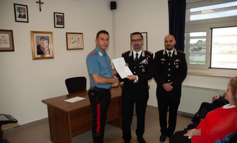 San Vito dei Normanni (BR): Il Comandante Provinciale dei Carabinieri di Brindisi, Colonnello Giuseppe De Magistris, nel corso della visita effettuata alla Compagnia di San Vito dei Normanni ha ricevuto il Vice Brigadiere Corrado Minervini e l’Appuntato Scelto Q.S. Angelo Calò, ai quali ha voluto tributare un vivo apprezzamento per aver domato le fiamme di un incendio che stava per propagarsi all’interno di un appartamento ubicato presso una struttura ricettiva. Di seguito, viene riportata la motivazione del “Vivo Apprezzamento” tributato ai militari dal Colonnello Giuseppe De Magistris: