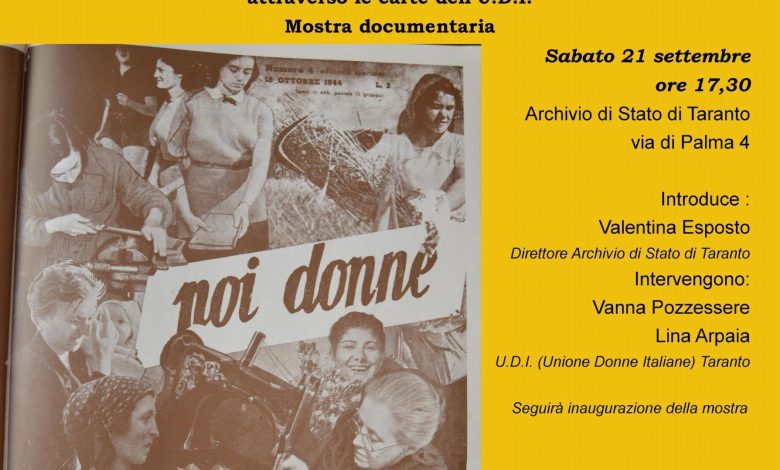 All’inaugurazione, sabato 21 settembre alle ore 17.30 presso la sala Conferenze dell’Archivio di Stato, interverranno Vanna Pozzessere e Lina Arpaia (già UDI – Taranto).