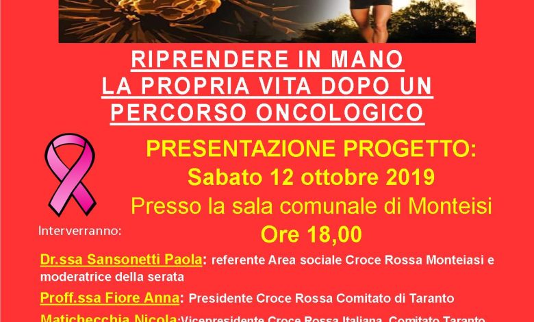 Medici, infermieri e psicologi volontari di Croce Rossa e laici insieme a professionisti dello sport si incontrano per organizzare un percorso di attività sportive per queste donne che hanno bisogno di riprendere in mano la propria vita e rinascere nel fisico e nella mente (in maniera completamente gratuita) Il progetto verrà presentato il 12 ottobre 2019 alle ore 18.00 presso la sala comunale di Monteiasi.