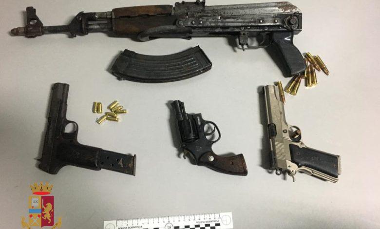 Lecce: Gli Agenti della Squadra Mobile della Questura di Lecce hanno rinvenuto e sequestrato 3 pistole e 1 kalashnikov perfettamente funzionanti, con relativo munizionamento, all’interno di un casolare diroccato sito sulla Lecce/San Cataldo. A segnalare ciò, è stato un poliziotto libero dal servizio che notando tre giovani presumibilmente stranieri, scavalcare il muro di recinzione di una proprietà con un borsone di grosse dimensioni di colore nero. Gli agenti dopo aver setacciato l’intero perimetro della proprietà hanno rinvenuto, all’interno del casolare, il borsone in questione nascosto sotto un cumulo di detriti. La sorpresa degli agenti quando hanno scoperto il contenuto del borsone è stata inaspettata. Sono in corso indagini da parte degli investigatori, soprattutto per stabilire,attraverso esami balistici, se le armi hanno già “sparato” ovvero se sono state usate per commettere qualche omicidio.