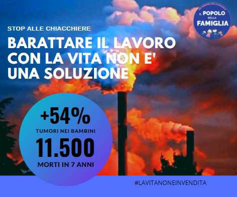 Taranto – Ilva, Popolo della famiglia: “Barattare il lavoro con la vita non è una soluzione. Il Governo racconta favole”