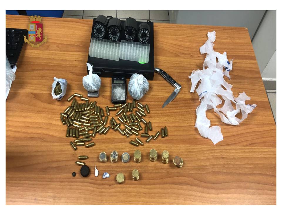 I Falchi hanno recuperato, in un secchio, tra le reti da pesca, una busta in plastica con 97 proiettili calibro 9×19 parabellum. L’operazione, ostacolata da porte e cancelli in ferro poste a protezione della piazza di spaccio, non ha consentito di individuare e fermare i responsabili dell’attività illecita che, poco prima dell’arrivo dei poliziotti, sono riusciti a guadagnarsi la fuga attraverso una scala che dava accesso ad una botola situata sul soffitto, consentendo la fuga attraverso i tetti.