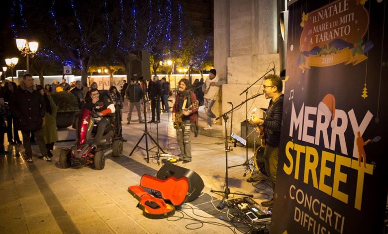 Merry Street è stata la naturale prosecuzione del riuscito esperimento dei Concerti Lungo il Mare che la scorsa estate hanno animato gli affacci sul mare della città di Taranto. E l’amministrazione comunale ha voluto rilanciare, scommettendo anche sulla versione invernale, includendo il format delle sette postazioni musicali attive contemporaneamente nel cartellone “Il Natale di Mare e di Miti”.