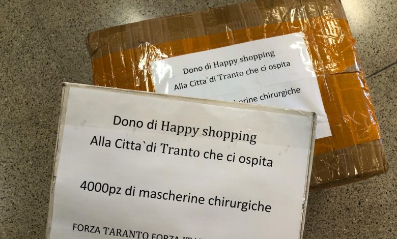 TARANTO – L’amministrazione Melucci ringrazia di cuore Happy Shopping, un esercizio commerciale che opera a Taranto gestito da cittadini di nazionalità cinese, per aver donato alla comunità locale ben 4mila mascherine chirurgiche.