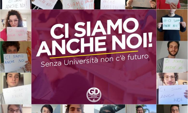 I Giovani Democratici di Capitanata, Taranto, Brindisi e BAT, assieme alla federazione provinciale dei Giovani Democratici di Modena, hanno lanciato una campagna social #CiSiamoAncheNoi in cui auspicano risposte concrete da parte del Governo e Regioni sul rimborso totale dei costi per gli affitti delle abitazioni non utilizzate dagli studenti a causa del Coronavirus e sulla riduzione della tasse universitarie di questo anno accademico. A questo spot potranno partecipare tutti gli studenti universitari che lo vorranno, inviando una foto alla federazione di appartenenza.